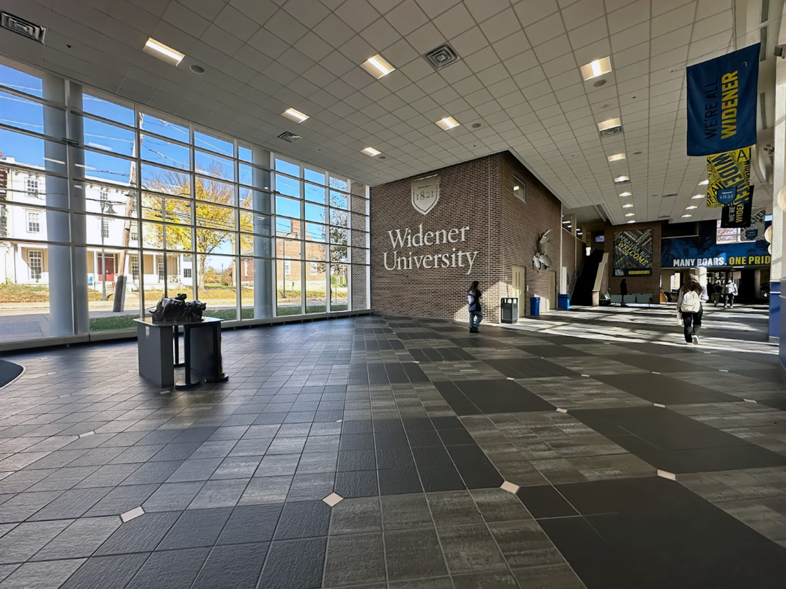 Seating options are varied and adaptable, supporting everything from a quick solo lunch to larger communal gatherings. Material selections and cohesive branding tie the space together, reflecting Widener University’s character and its commitment to a vibrant campus experience.